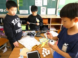 2年生は、生活科の授業で、「おもちゃランド」に取り組みました。グループに分かれて「ストローアーチェリー」「びっくりかえる」「ぱたぱたカー」「ゴムロケット」「ブーメラン」を作りました。よりよくなるためにどうしたらよいかを考えながら、友達と協力して作っていました。出来上がったら、1年生を招待して遊んでもらいます。楽しみです!!