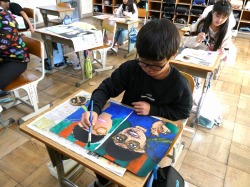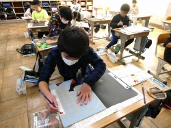 5年生は、図画工作科の授業で、多色刷り版画をしました。板に丁寧に絵の具を塗り、黒い紙に刷っていきます。色鮮やかな素敵な作品が出来上がりそうです。