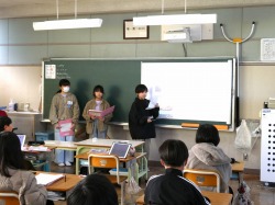 歯みがきチェック週間なので、健康委員が各教室に歯みがき順序の説明に行っています。虫歯にならないようにしっかり磨こう!