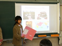 6年生は、外国語科の授業で、グループごとにパフォーマンススピーチを行いました。グループごとに、ケーキやアイスクリームなどは、どこの国からきた品物なのかを発表し、世界とのつながりを感じていました。