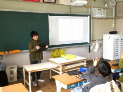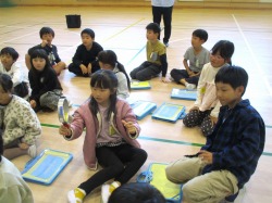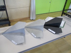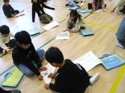 SUBARUの方が授業をしてくださいました。自動車や飛行機に使われている材料を教えてくださったり、「アルミ」と「強化プラスチック」の堅さの違いを体験させてくださったりしました。その他にも、紙で作った丈夫な材料の上に乗ったりするなど、貴重な体験ができました。最後には、紙飛行機を作り、飛ばしました。
