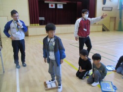 オンラインALTと会話をする「オンラインブレンディッド授業」を行いました。自己紹介(「How do you spell name?」「When is your birthday?」)や「can you~?」の質問にリアクションを交えながらはきはきと答えていました。