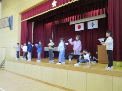 最後に、お世話になった学年が、メッセージを渡したり、手作りの紙のお花などを渡して、感謝の気持ちを伝えていました。感謝の気持ちを伝えることのできるありっ子も素敵ですね。