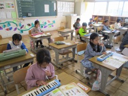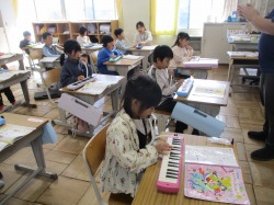 1年生は、音楽科の授業で、「すずめがちゅん」を鍵盤ハーモニカで演奏しました。テンポを速くしても上手に弾けていました。