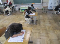 6年生は、国語科の授業で、「みんなで楽しく過ごすために」のテストを行いました。