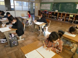 2年生は、国語科の授業で、「ふゆ休みまでのかん字」のテストをしました。勉強の成果が出ているとよいです。