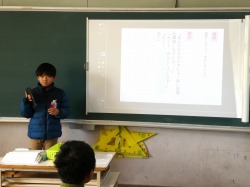 5年生は、国語科の授業で、「固有種が教えてくれること」を学習しました。教科書に載っている資料の効果を考えました。たくさん手を挙げて、発表していました。