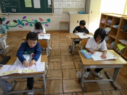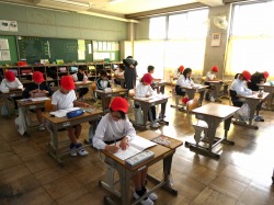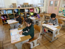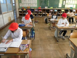 1年生は、国語科の授業で、漢字ドリルに取り組んでいました。一画一画丁寧に書いていました。