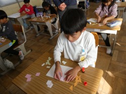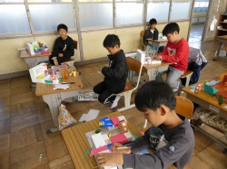 2年生は、図画工作科の授業で、「ともだちハウス」を作りました。テーマは、「友達が楽しくくらせるハウス」です。色・作り・飾りを工夫し、丁寧に完成させていました。