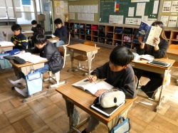 5年生は、国語科の授業で、「やなせたかしーアンパンマンの勇気」を学習しました。席の順番に音読をしていました。
