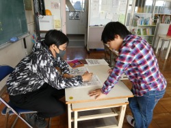 月曜日と水曜日はALTの先生の授業があります。ゲームなどを取り入れて、楽しみながら英語を学んでいます。今はステッカーチャレンジ開催中。放課の時間に話しかけるとステッカーがもらえるので、それで学年のツリーをカラフルに飾っていきます。