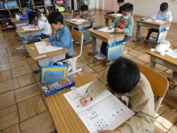 5年生は、CRT(算数)に真剣に取り組んでいました。
