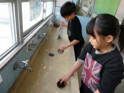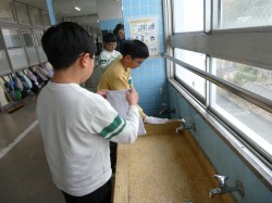 今日も、子どもたちは、水の冷たさにも負けず、友達と協力しながら丁寧に掃除をしていました。さすがは「ありっ子」です!