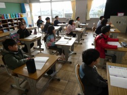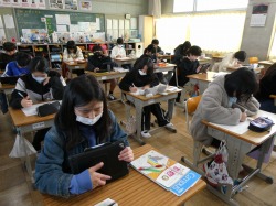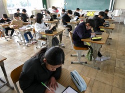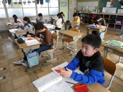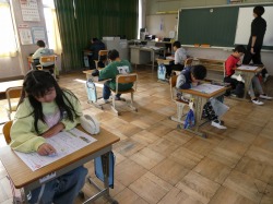 5年生は、国語科の授業で、テストに取り組んでいました。