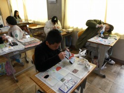 3年生は、いつもお世話になっている学校応援団の方にお礼の手紙を書きました。感謝の気持ちを込めて、真剣に書いていました。