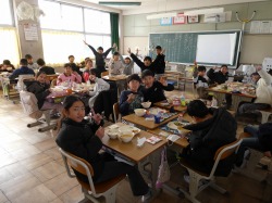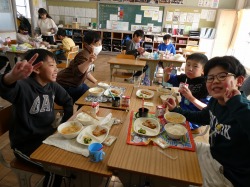 今日の給食の献立は、ご飯、牛乳、手羽先風唐揚げ、小松菜の酢の物、かき玉汁、生せんべいでした。今日もとてもおいしかったです!!ありがとうございました。