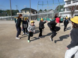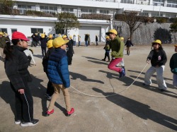 1年生は、体育科の授業で、なわとびを行いました。先生から「前跳び」を上手に跳ぶこつを教えてもらい、実践していました。