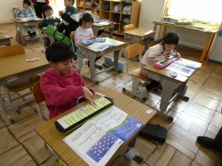 1年生は、音楽科の授業で、「きらきらぼし」をけん盤ハーモニカで演奏しました。指使いがしっかりできていました。