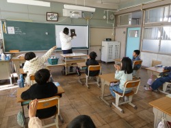 1年生は、国語科の授業で、「もののなまえ」を学習しました。先生が、「お肉屋さん」に売っているものを聞くと、たくさんの児童が手を挙げていました。また、発表している児童に注目して意見を聞いていました。すばらしいです。