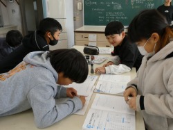 4年生は、理科の授業で、水を冷やし続けると、どのようにして氷の姿に変えるかの実験結果をまとめていました。